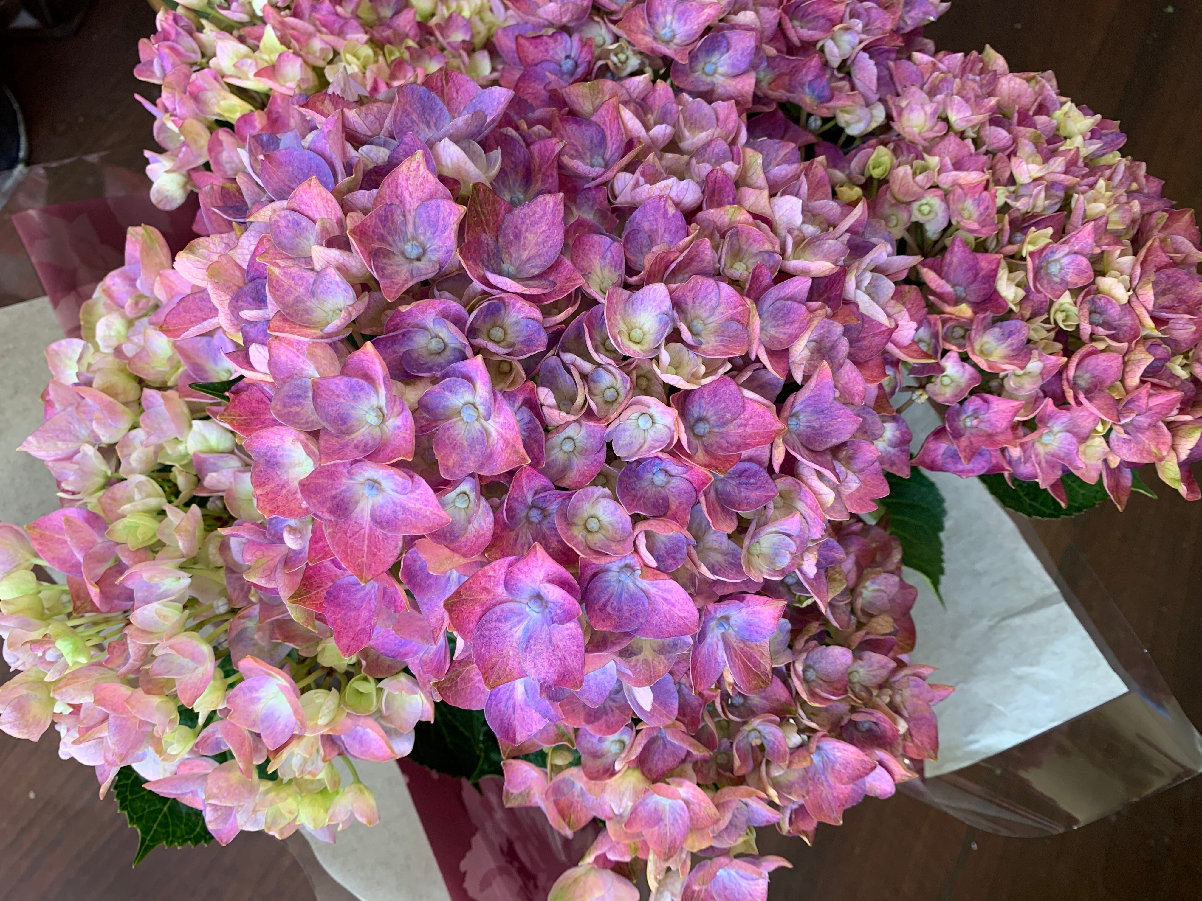 紫のシックな色合いで上品な紫陽花です。お部屋に飾って眺めているとホッと落ち着く様な気がします。贈り物や自分へのご褒美にもよろしいかと、、 高さ約50㎝横幅、奥行き約35㎝ 〇手作りマスクを1つお付け致します。 〇メッセージカードが必要な方は、備考欄に入力お願いします。 ○その他ご要望などございましたら、備考欄やメールでお知らせください。
